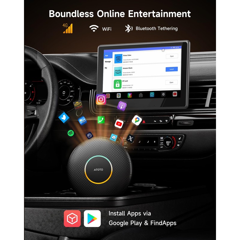 - Easy App Access: Download mainstream apps from Google Play or use “FindApps” for streaming services like Netflix and Disney+. Get the shows you love right on your car’s screen, and split screen is supported to get customized use