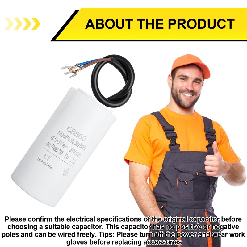 - Compatibility: CBB60 capacitors are widely used in air compressors, water pumps, high-pressure cleaners, air conditioners, washing machines, motors, generators, HVAC, fans, drills, separators, saws and grinders that meet the specifications of this product