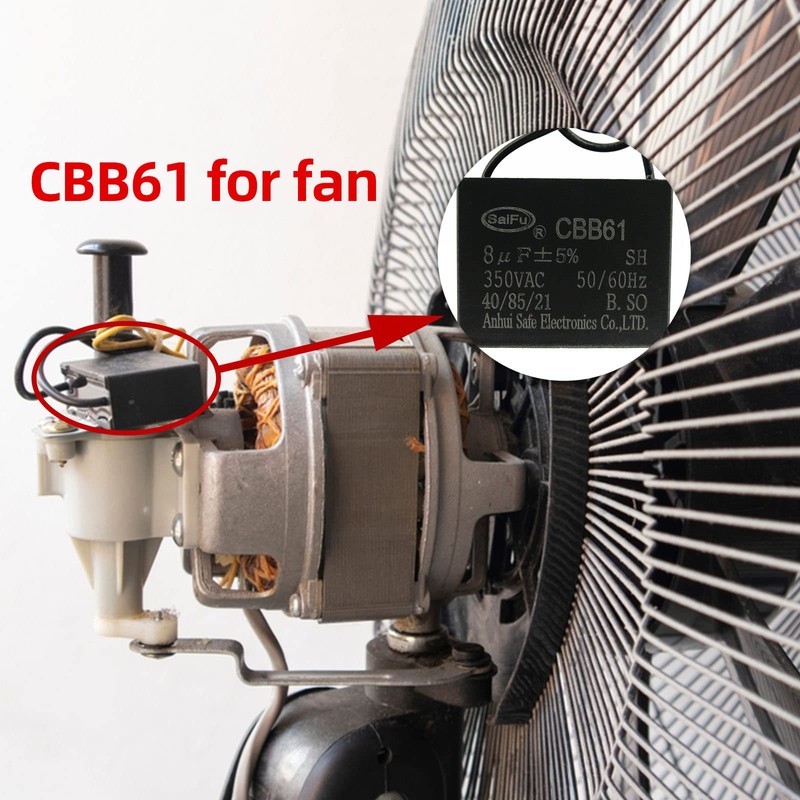 - ✅MAKE CEILING FAN RUN FASTER: Model: CBB61. Rated Voltage: 350V AC. Capacity: 8uf ±5%. Lead Wires: 2. Rated Frequency: 50Hz/60Hz. If your ceiling fan is running slower than usual, not working at all, or can't adjust the speed like before, please check the CBB61 ceiling fan capacitor first. The capacitor may be burned out or low in power, and you need to replace it with a new one.