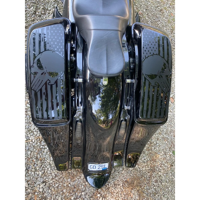 Cbcdecals- American Flag Saddle bag Lid Decals with Skull custom made to fit 1993-2025 Model "Harley Davidson" Tour Bikes