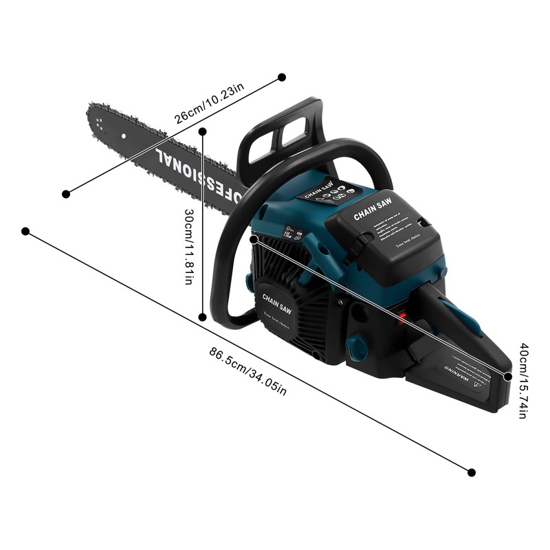 Equipped with premium-grade materials, exceptional performance capabilities, and a robust engine, this gasoline chainsaw emerges as a pinnacle of professional arboreal slicing equipment, ingeniously designed to optimize your time and alleviate the strains of manual labor. Gas-powered chainsaw harmoniously fuses advanced engineering with ergonomic artistry, transforming the arduous task of cutting into an experience that epitomizes efficiency and finesse.