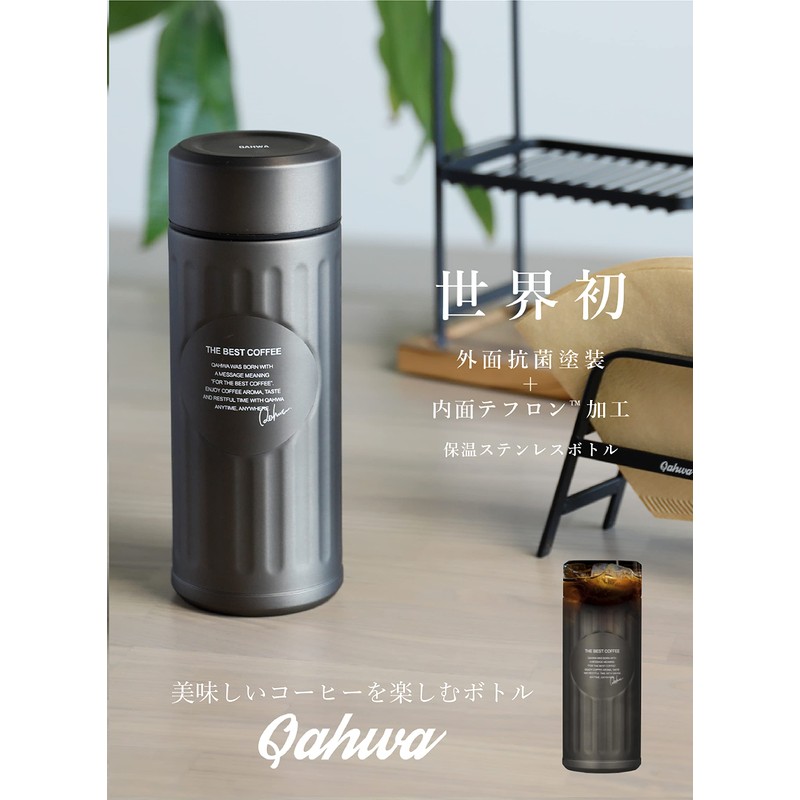 CBJAPAN QAHWA Water Bottle, Graphite Gray, 14.2 fl oz (420 ml), Direct Drinking, Vacuum Double Layer Structure, Antibacterial, Kafua Coffee Bottle