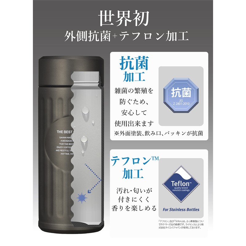 - Teflon Treatment: The inside of the bottle is treated with Teflon coating, making it stain resistant and easy to fall off, so it is hygienic. It is difficult to absorb the smell of your drink, so you can enjoy the flavor and aroma of your coffee