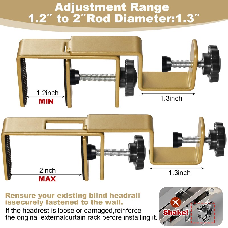 - 【Scope of application】nono brackets for curtain rods over blinds fits with an adjustment range that covers 1.2 to 2 inches,this bracket is well - equipped to handle curtain rods with a maximum diameter of 1 inch.This wide adjustment capacity makes it suitable for a broad spectrum of curtain types and size.