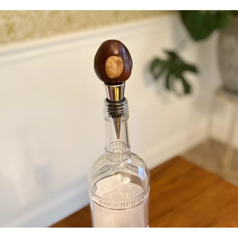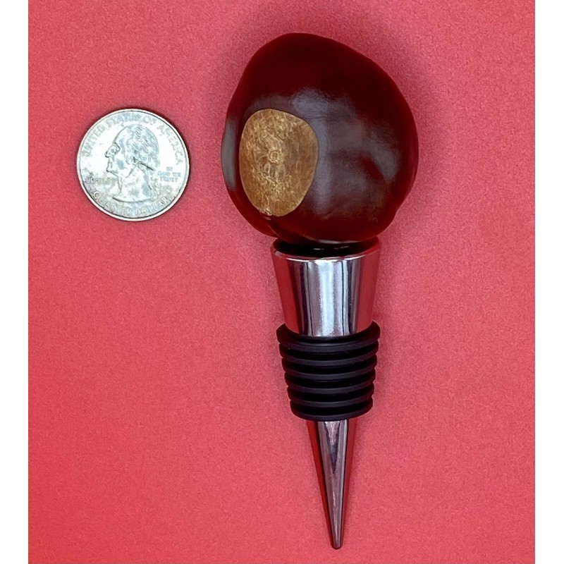 The Ohio State Buckeye wine and bottle stopper is made with the classic chrome style stopper and the largest Columbus Ohio buckeyes in the city.