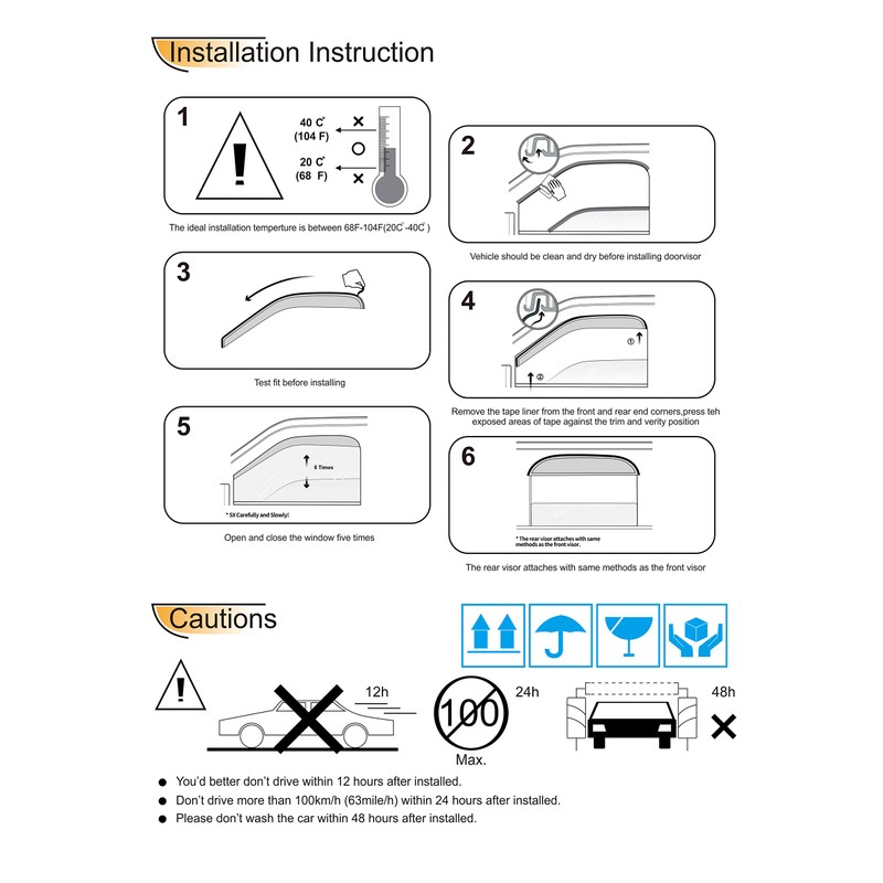 4pcs vent shade window visors (Installation instruction is not included,please check the sample installation picture above for reference)
