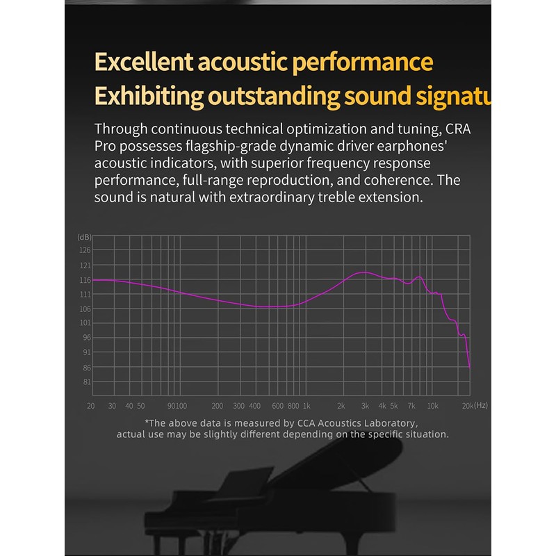 - 【High-Efficiency Magnetic Drive System, Excellent Acoustic Performance】Through continuous technical optimization and tuning, CRA Pro possesses flagship-grade dynamic driver earphones acoustic indicators, with superior frequency response performance, the sound is natural with extraordinary treble extension. CRA Pro utilizes the same neodymium-iron-boron magnets as the N52 planar structure+4-layer voice coil construction to build a powerful magnetic drive system, enhancing the efficiency, control and dynamic response of the headphones, resulting in fuller and more powerful sound performance, with richer detail reproduction.