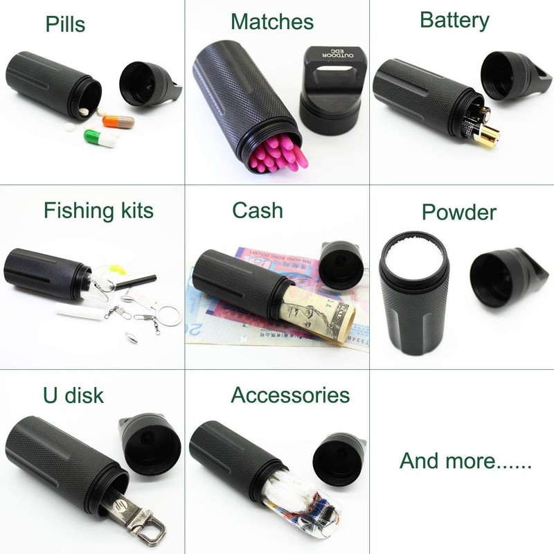 - Perfect to Store pills, Vitamins, Money, U-disk, Batteries, matches, Flintstones, ear plugs, Outdoor seasoning and Other Accessories for a Secure Storage on the Go
