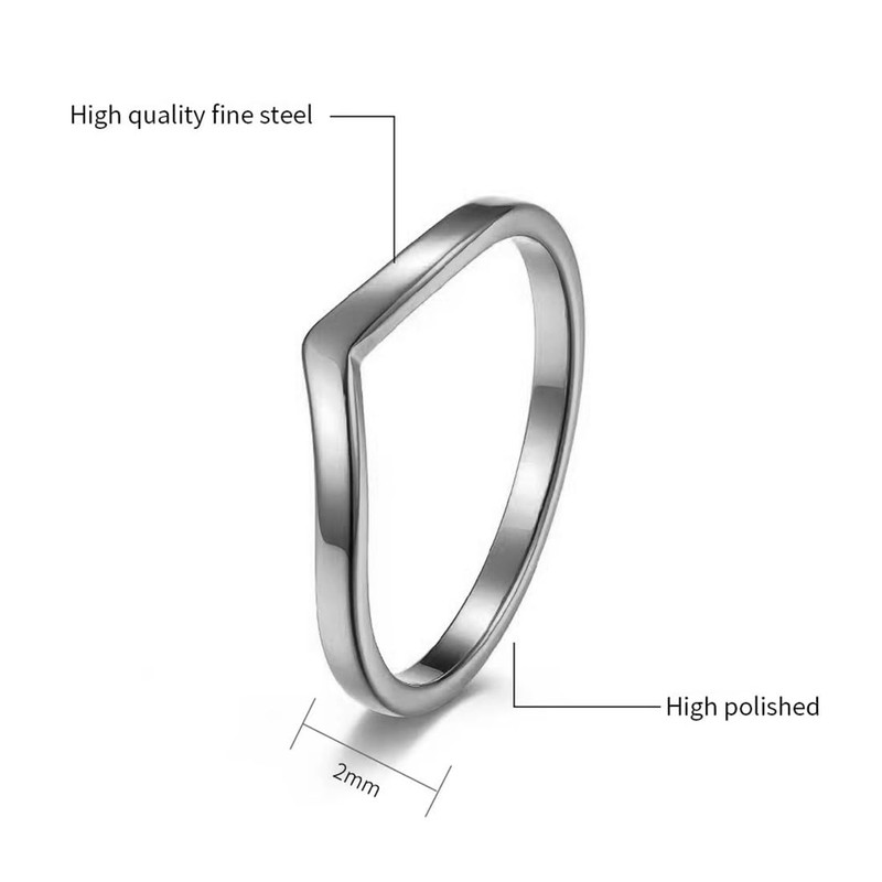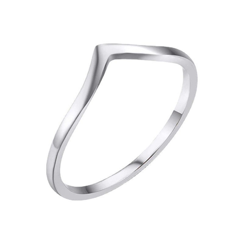 CCBFY Stainless Steel V Shaped Wedding Band Engagement Promise Ring for Women Pointed Chevron Classical Simple Plain Statement Ring Silver 7