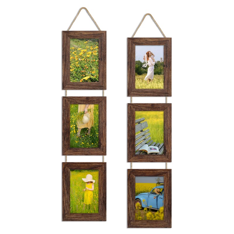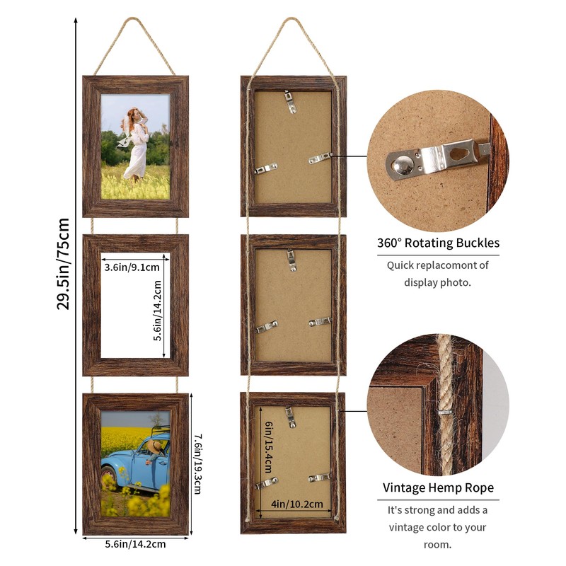 - 【Multi Picture Frames Collage】Three 4x6 rustic collage picture frames strung together with hemp rope. Make a beautiful addition to any room