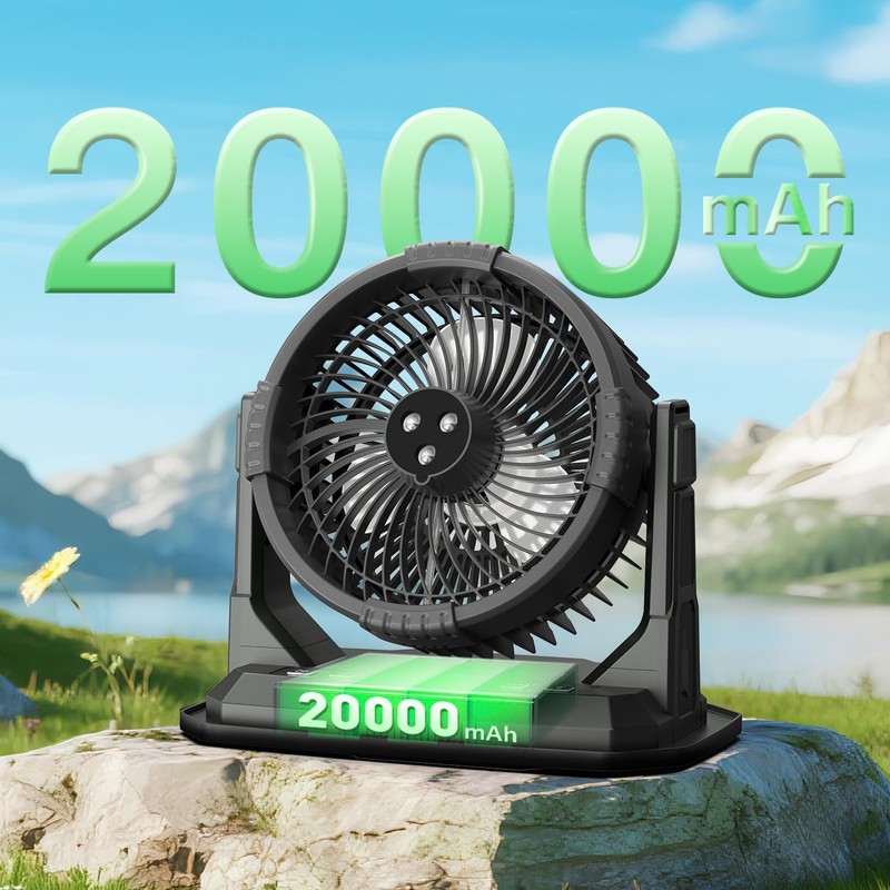 • 【20000mAh Capacity Battery】4-speed strong wind, the battery-powered misting fan uses a 20000mAh high-performance lithium battery to provide 7-8 hours (high fan + mist) or 13-56 hours (fan only) of working time. Its lightest wind speed mode can produce a gentle breeze well, with only minimal white noise in the tent at night. Its strongest wind speed mode can cool down a group of people!