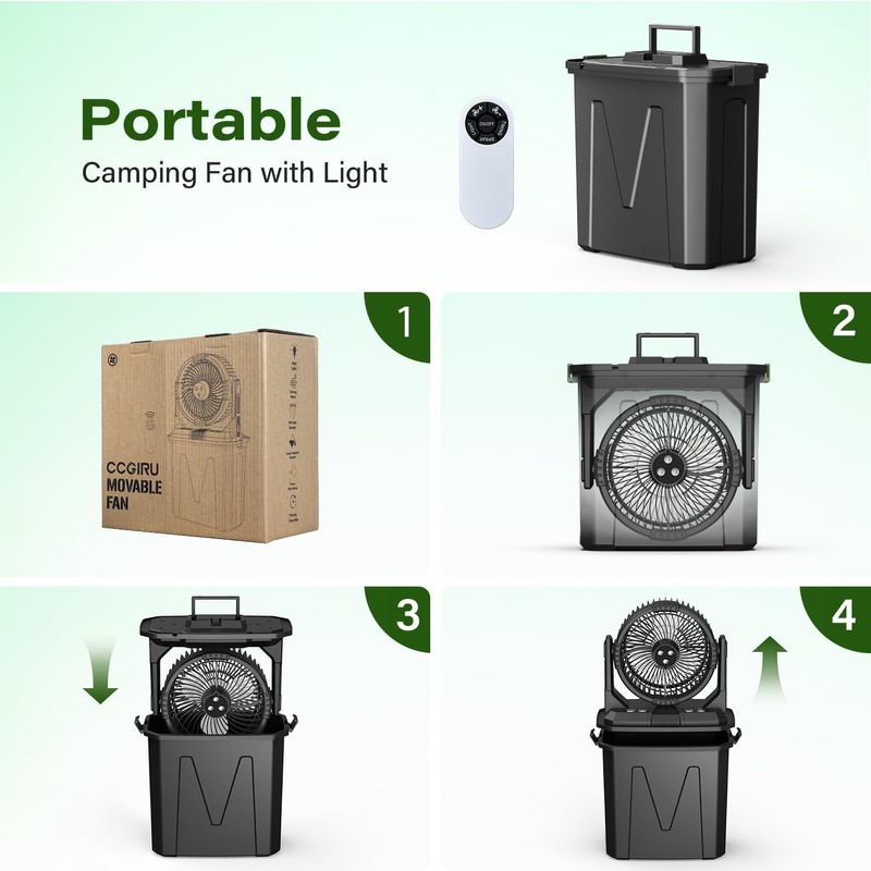 • 【Led Camping Lantern】CCGIRU rechargeable fan is portable and battery-powered, It also features 4 fixed lighting colors and multiple RGB flashing modes (3 marquee modes), providing soft light at night and strong light during outdoor activities.