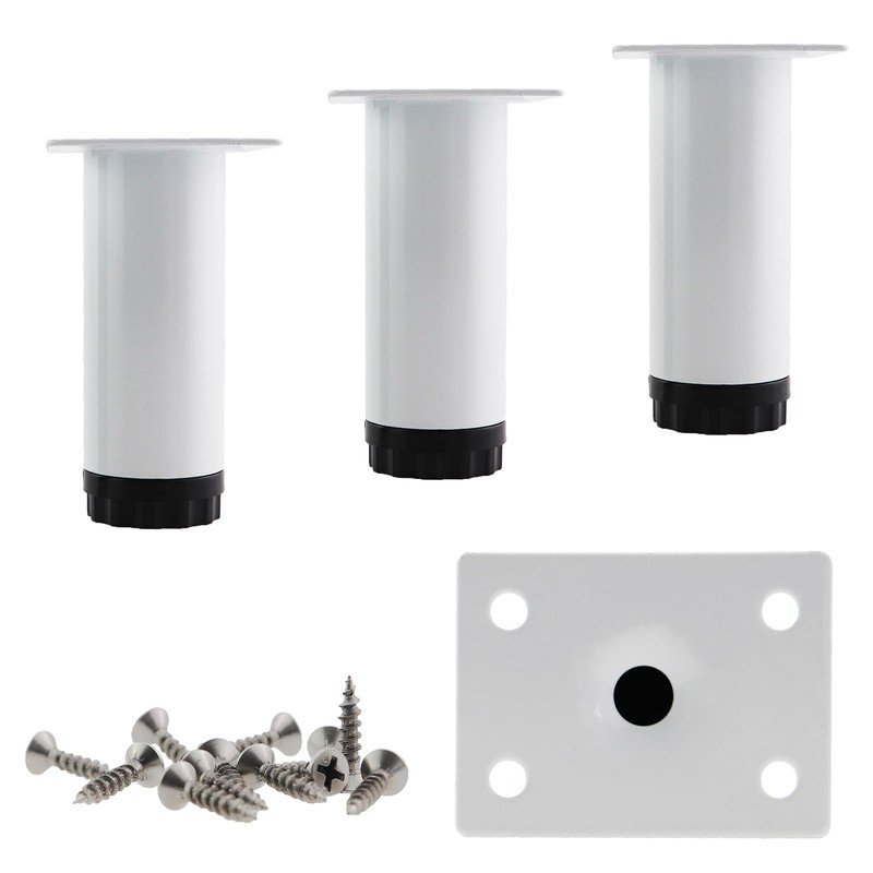 CChiai 4PCS Furniture Leg Cover Hardware - 3 inch Adjustable Feet Metal Round Cabinet Support Feet for Nightstand, Sofa, Desk - White