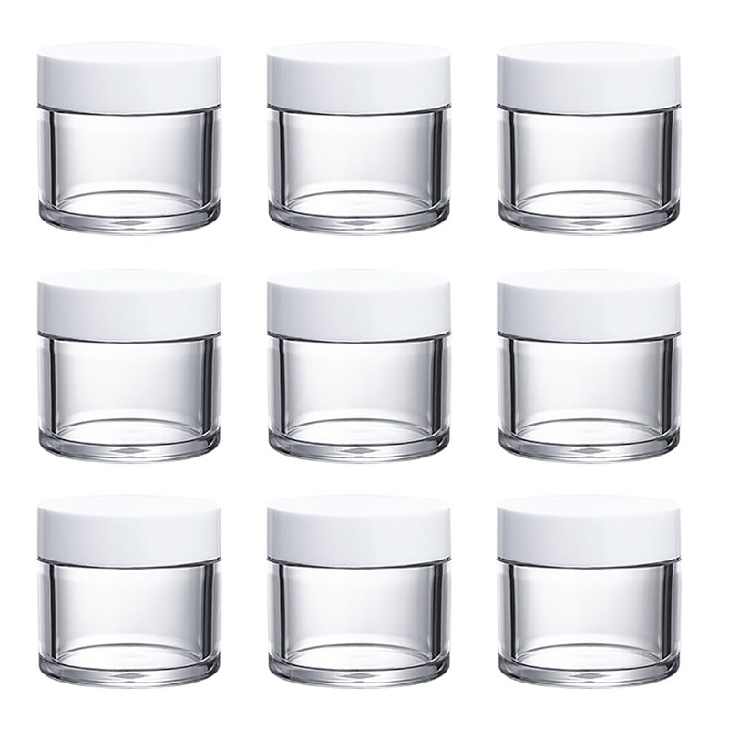 ccHuDE 10 Pcs 30 ml 1 oz Refillable Plastic Jars Small Cosmetic Jars Round Clear Jars Empty Creams Jars Makeup Sample Containers with Lid White