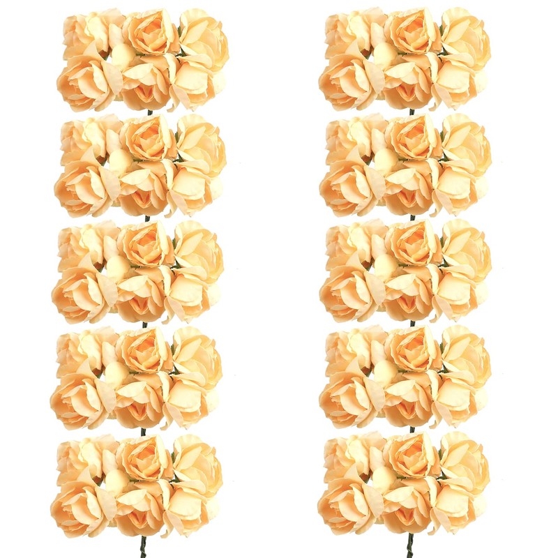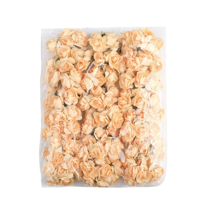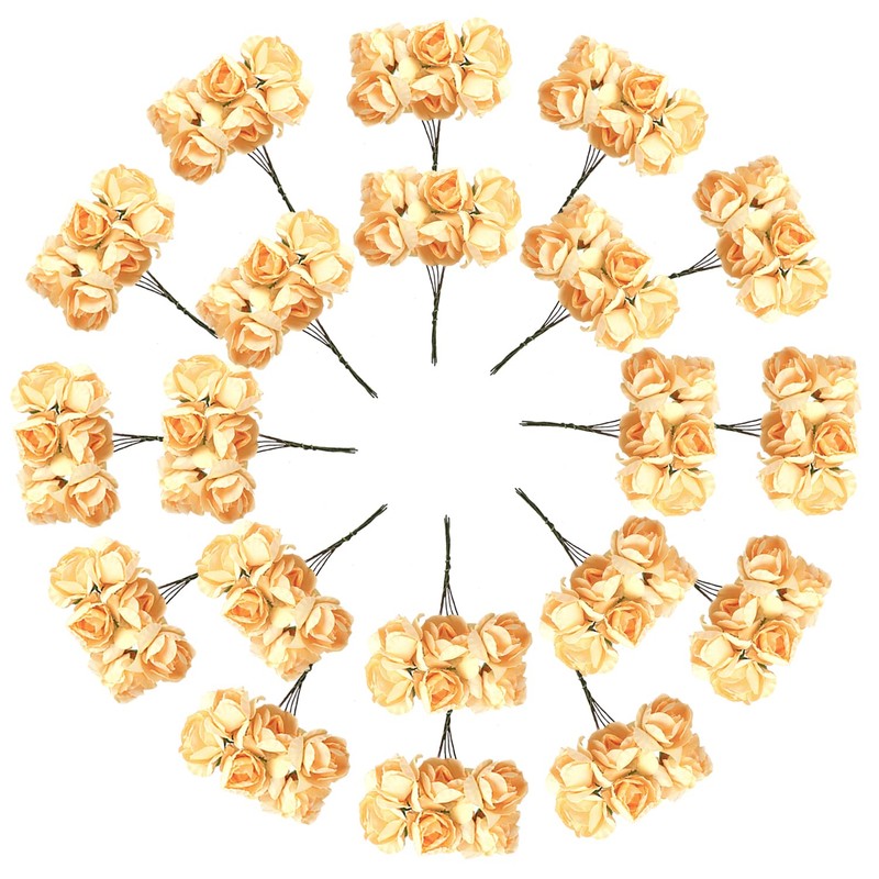 CCINEE 144pcs Mini Paper Flowers, 30mm Mulberry Paper 1.2" Artificial Rose Flower with Stem for DIY Crafts Projects Scrapbooking Wedding Decorations (Champagne)