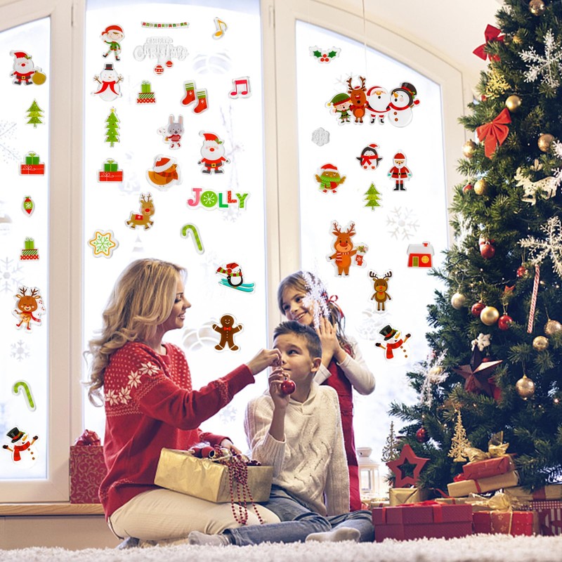 - Christmas Designs:Featuring full of cute Christmas patterns,including santa clasu,Christmas tree,reindeer,snowman,elf,snowflake,gingerbread man,gingle bell and stockings etc.The Christmas thick gel sticker will bring your home more Christmas atmosphere.