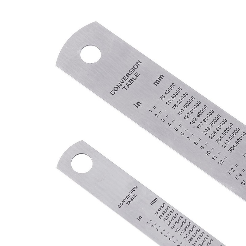 CCINEE Stainless Steel Straight Scale Ruler, 11.8 inches (300 mm) (Large) x 1, 5.9 inches (150 mm) x 1, Set of 2 "With Exchange Chart for Millimeters and Inch"