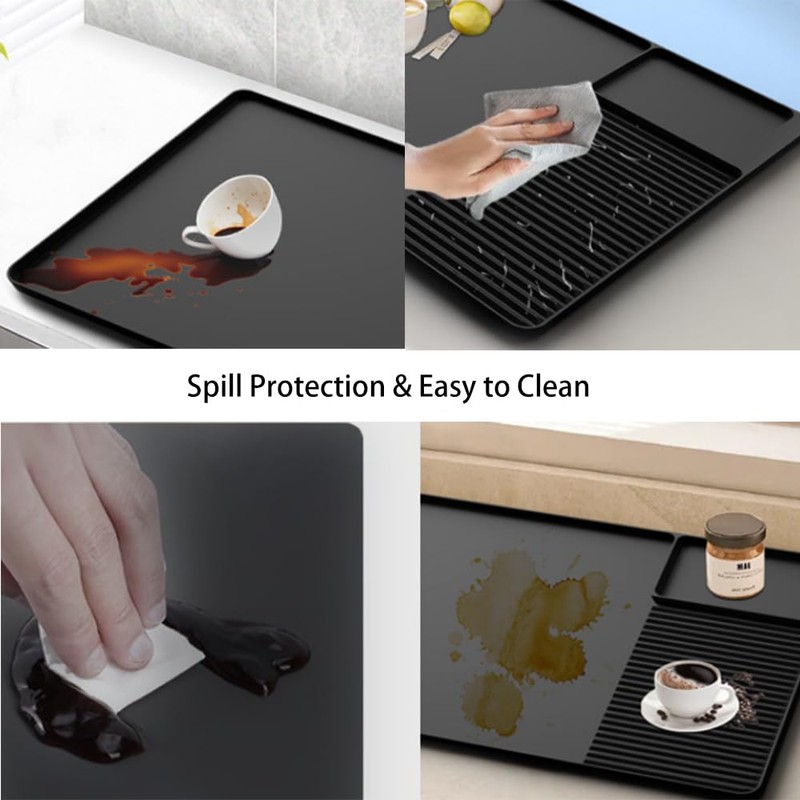 • The coffee bar mat is designed with a 0.4 inch raised edge, effectively preventing spills and leaks, and will not damage or stain your countertop even if you accidentally spill coffee.