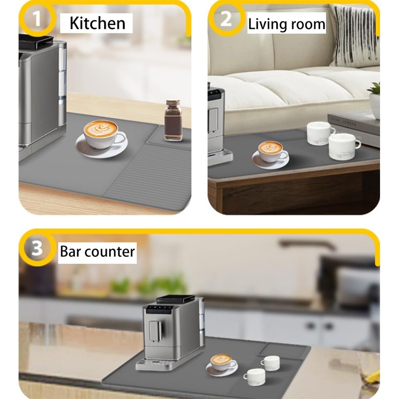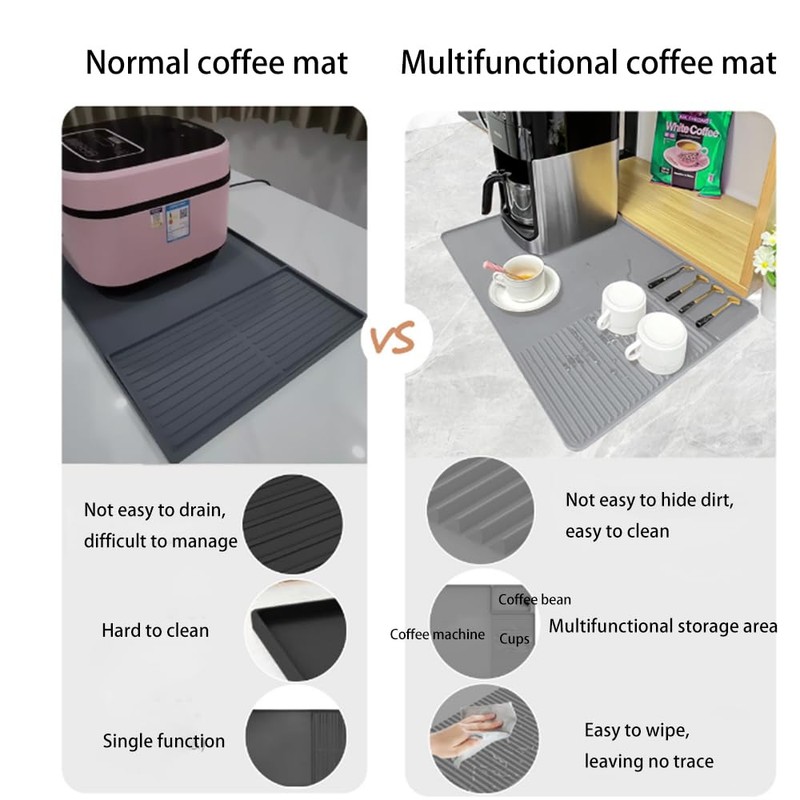 • The coffee mat always keep your countertops clean and tidy. You don't need to clean them often. Daily cleaning only requires wiping and rinsing.
