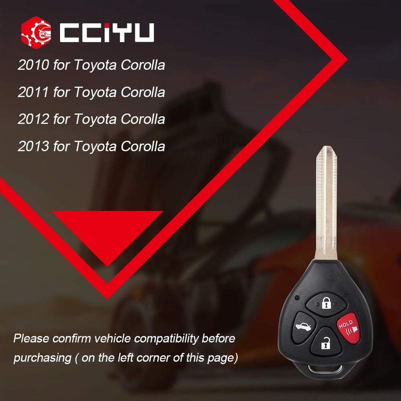 - FITMENT: cciyu key fob 1PC Uncut 4 Buttons Keyless Entry Remote Fob Replacement for 10-13 for Toyota COROLLA Series with OE ADP12514801S