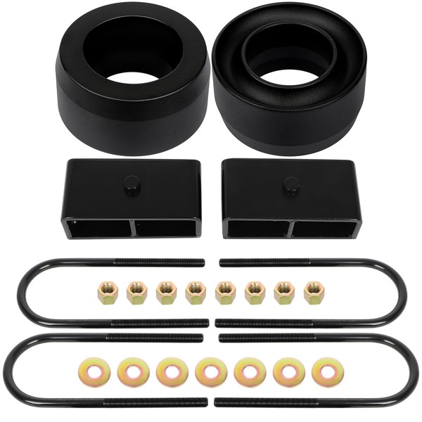 - BENIFIT:The leveling kit improves the looking of your truck and increases ground distance, allowing you to fit larger custom rims and tires, also provides additional fender distance for larger tires and wheels