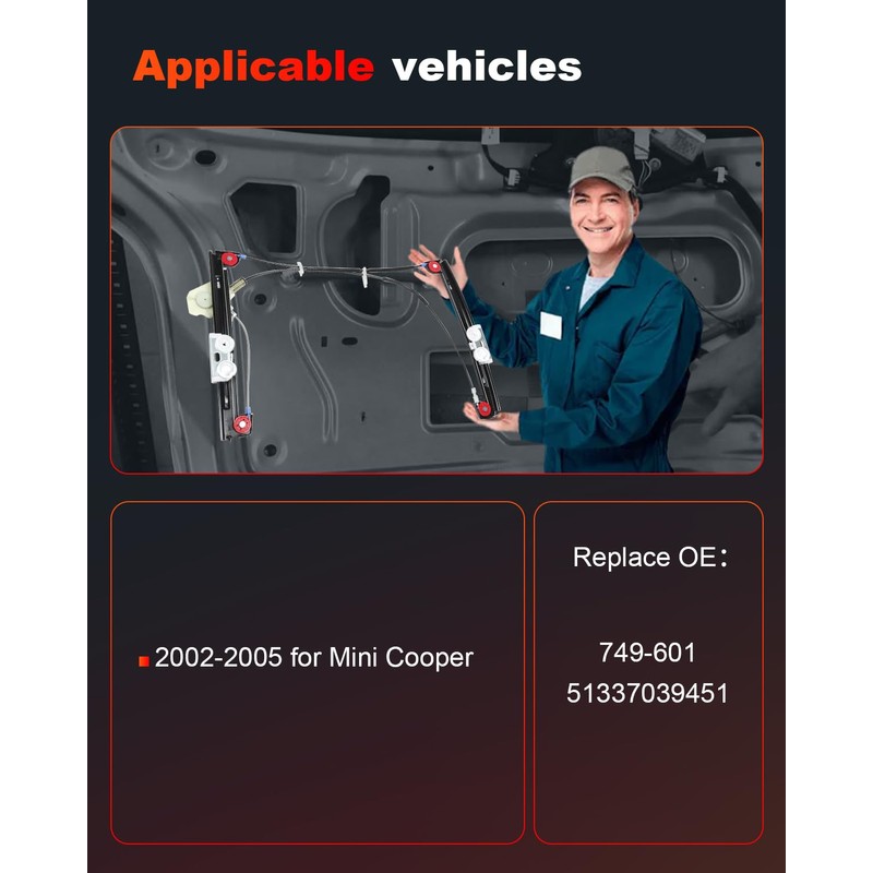 - SUITABLE VEHICLE- The Power Window Regulator Fit For 2002 2003 2004 2005 for Mini Cooper