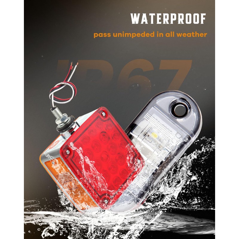 cciyu Amber/Red Double-Face Pedestal Fender Light with Stud Mount, Square LED Stop Turn Tail Signal Trailer Light for Semi Trucks Peterbilt Kenworth 4 x White White Oval Trailer Truck Clearance Light