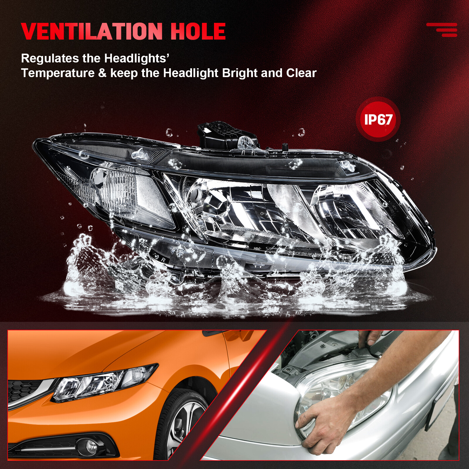Headlights and Taillights --CCIYU Fit For: For Honda Civic Base 1.5L 2012-2013