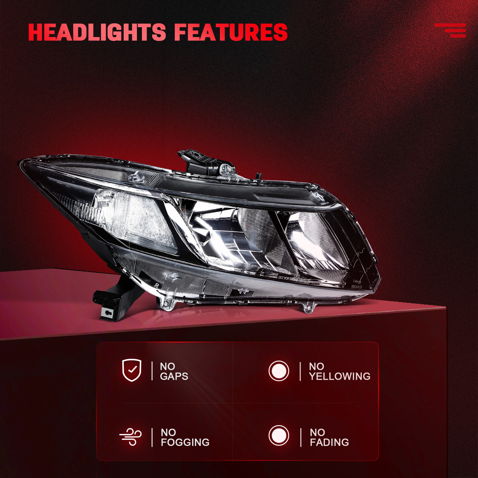 Headlight Assembly For 2012-2015 Honda Civic 4Dr Sedan/2Dr Coupe Left&Right