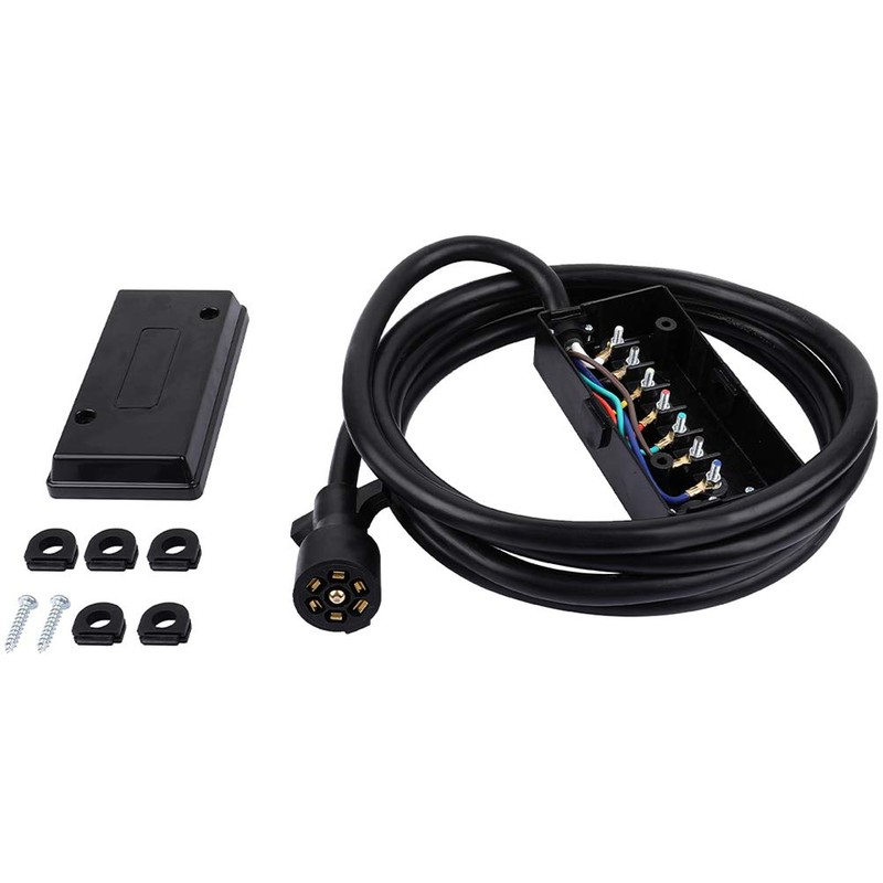 cciyu Heavy Duty 7 Way Plug Inline Trailer Cord for RV Truck Camper, Weatherproof (8 Feet, with 7 Gang Junction Box, 7 Pin Trailer Wiring Harness)