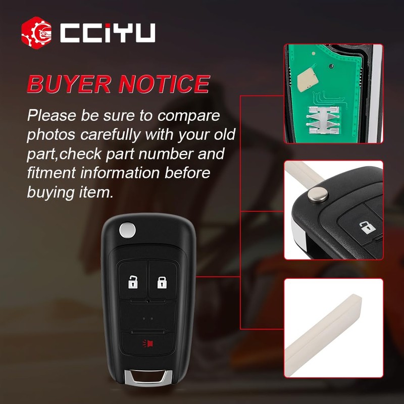 cciyu Remote Key Fob 2010 Fit for Buick Allure 2.4L 2010 Fit for Buick Allure 3.0L 3 Buttons OHT01060512