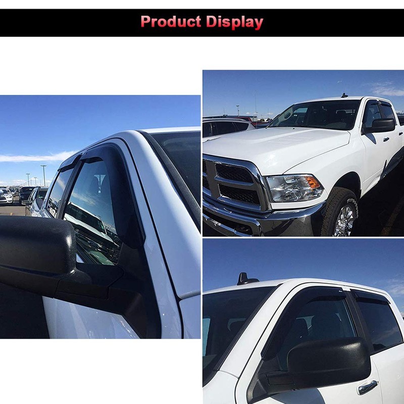 - Easy Installation: No cutting, no drilling window deflector for easy install! Includes 3M adhesive tape that is already pre-cut and molded onto the edge. Installed by stick on automotive grade adhesive tape on window fFor Rame for a sleek, streamlined appearance for deflectors rain guards.