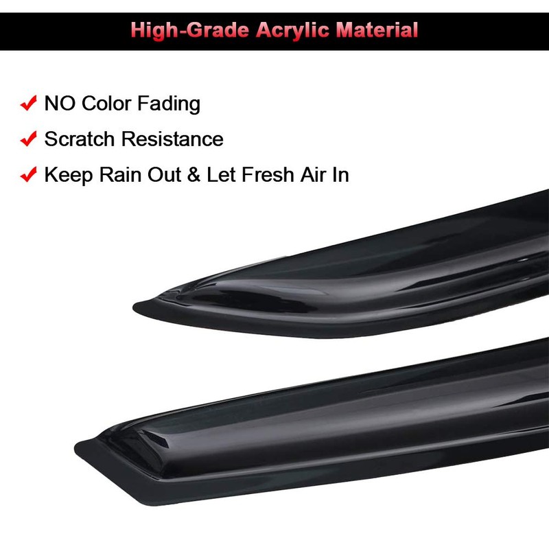 - Design:Aerodynamically designed to blend beautifully with your vehicle's contours.side window deflectors help reduce wind noise while driving, and with windows partially open to allow fresh air to circulate removing stale air and odors. in all driving conditions, especially in the rain.