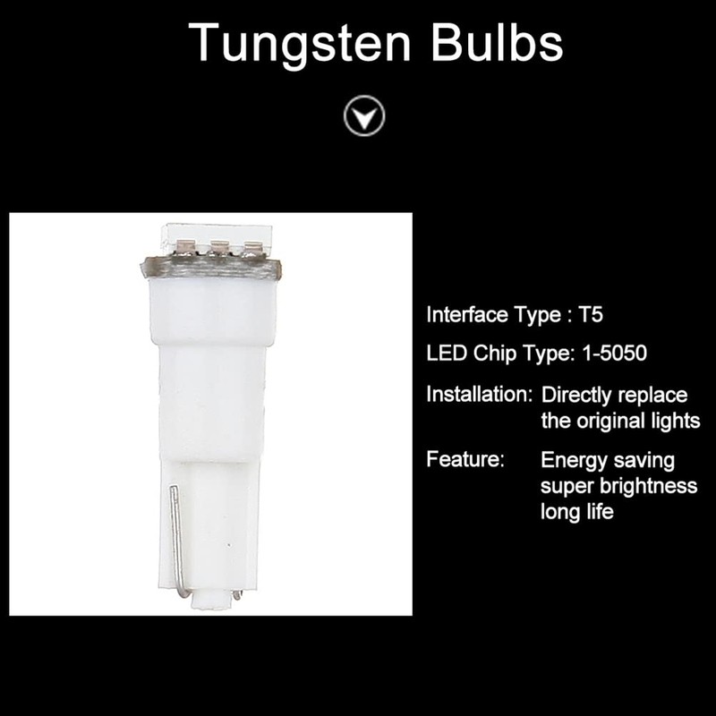 20 pieces Ultra White T5 1-SMD 5050 LED bulbs,Each bulbs contains 5050LED SMD which are much brighter and Special looking than the stock OEM yellowish traditional lamps.