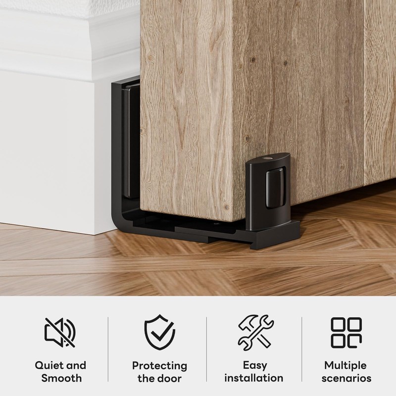 - 【Wide applicability】CCJH Sliding barn door bottom floor guide, for bypass, pocket, closet and barn style doors. Fine black powder coated surface, anti-corrosion ensures years of beauty and longevity.