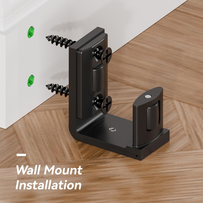 - 【Flush Bottom & Easy Installation】Wall mount, flush with the floor, protect your floor's integrity. Simply set up, no need to drill holes in your floor and no need to slot your door, screwed directly on the wall, making installation a breeze.