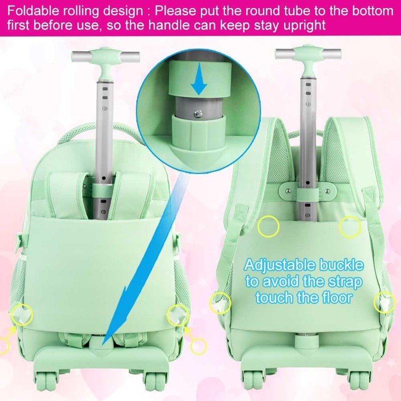 - 【MULTI APPLICATIONS】- This Rolling backpack with double wheels, sliding fast, not stuck, wear-resistant. It is the perfect gift for teenagers, girls, girls, students, friends, etc. Suitable for various occasions such as primary school, high school, junior college, nursing school, vacation, tourism, etc.