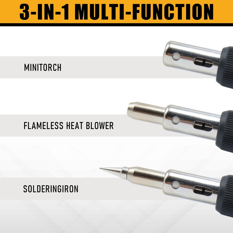 - NO POWER SUPPLY REQUIRED: The butane gas soldering kit does not require power supply and works It eliminates annoying power cords and is a handy tool for outdoor tasks and places without power. This makes soldering more convenient and flexible.