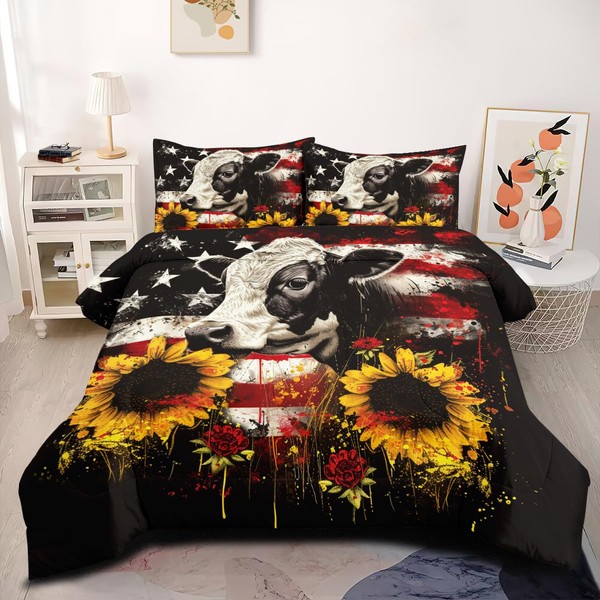 - Unique Design:Adorned with a vibrant, eye-catching cow motif, it features cow,sunflowers,USA flag—all in rich, fade-resistant colors that bring the endearing charm of rural farms to life in any room