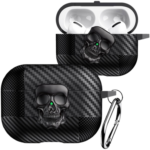 CCSmall for Airpods Pro 2nd Generation Case with Carabiner Keychain, Funny 3D Skull Protection Cover Full Body Shockproof with Secure Lock Girls Boys Case for Airpods Pro 2 Gen,Skull Black