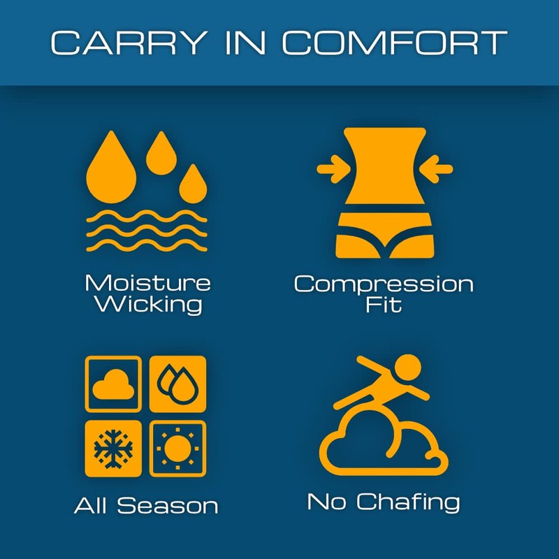 - EXCELLENT CONCEALMENT - NO PRINTING - Integrated holsters provide comfortable support for your gun, holding it snugly to your body. Comfortably carry spare clips, phone, small electronics, pepper spray, LVAD or other personal gear for use in sports, undercover, police, military, combat, assault, and covert applications! Sleeveless tank top shirt style LOOKS AND FEELS GREAT, indoors or out, under your button down shirt, t-shirt, pullover, or just about any clothing!