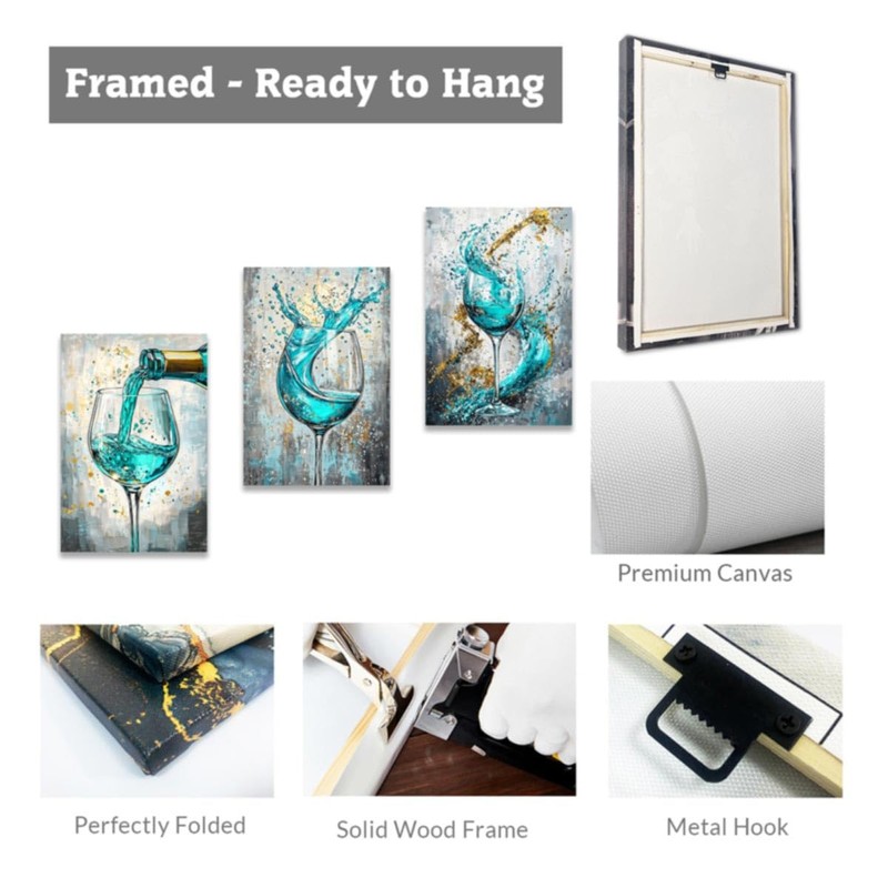 CCWACPP Teal Kitchen Pictures 3 Piece Kitchen Wall Art Wine Canvas Prints Dining Room Pub Bar Home Restaurant Decor Framed (11"x14"x3)