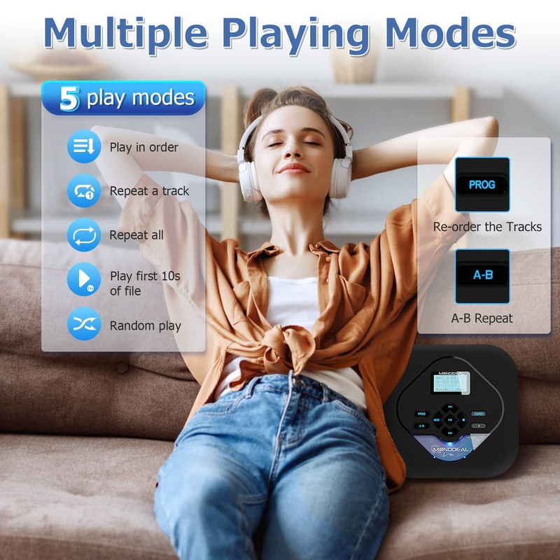 - CD Player with Stereo Speakers: This portable CD player is equipped with two stereo speakers, so you don't have to wear headphones all the time when listening to the CD. Excellent sound quality for enjoying all types of CDs. The LED display of the cd player portable helps to see the tracks information even at night. It has A-B Repeat and Last Memory function. A great gift for the elderly, children, students, friends.