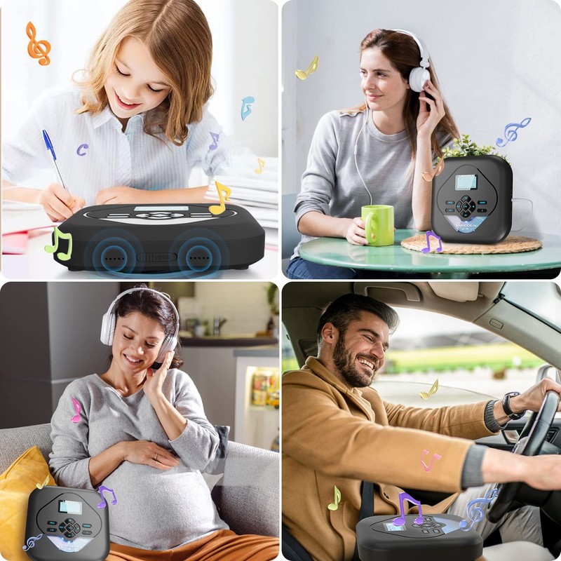 - Car CD Player and Anti-Skip: You can use this bluetooth CD player in the car via the AUX port. The package box is included a 3.5mm audio cable, so you can connect the small CD player to your car. Due to the advanced anti-skip and anti-shock technology, no longer afraid of problems with jumps, even when training or driving on bumpy roads.