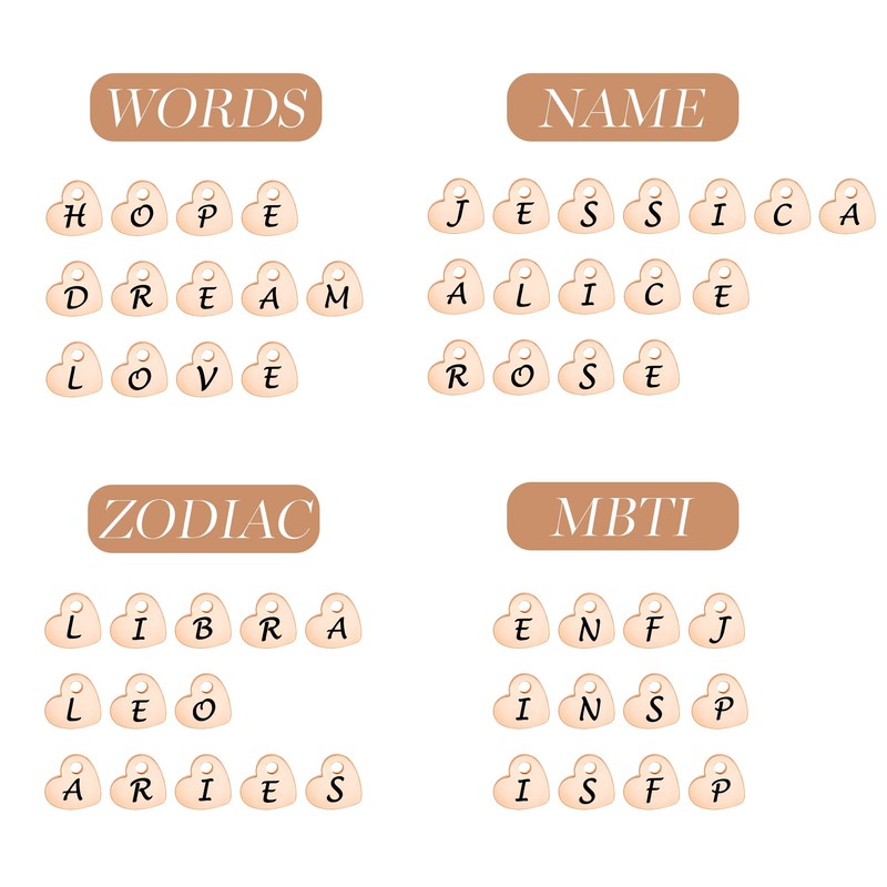 - Initial's Bracelet Meanings: Each 26-letter Might Be Someone's Family Firstname or a Special Symbol for You or Your Love One. Each Initial Letter Represents a Inspirational Words that Are Significant to You or Your Love One. Such as Letter B Means “Brave”, the Letter D Symbolizes "Dream", the Letter S Represents "Success", the Letter H Symbolizes "Happiness", and the Letter L Represents "Love" etc.