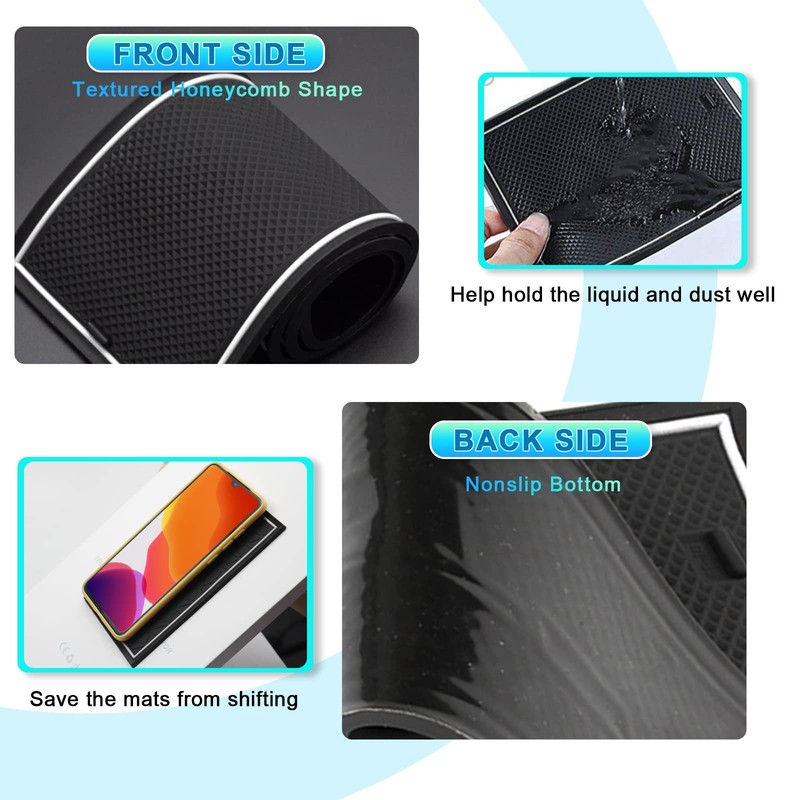 This centre console mat is made of flexible and durable rubber material. You can place them in areas such as cup holder, door slot and center console. These mats protect surfaces from moisture and drink overflow. Prevent the bottom of cup holders from scratching messy over time. They are easy to clean with soap and water and simply rinse the mats in the sink to clean.