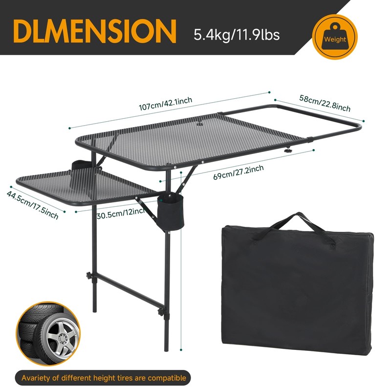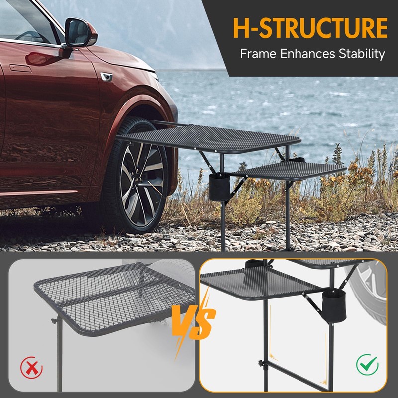- Unique Tire-Support Design – Ingeniously designed to use your vehicle's tire as one side of support, providing a stable and reliable table setup anywhere.