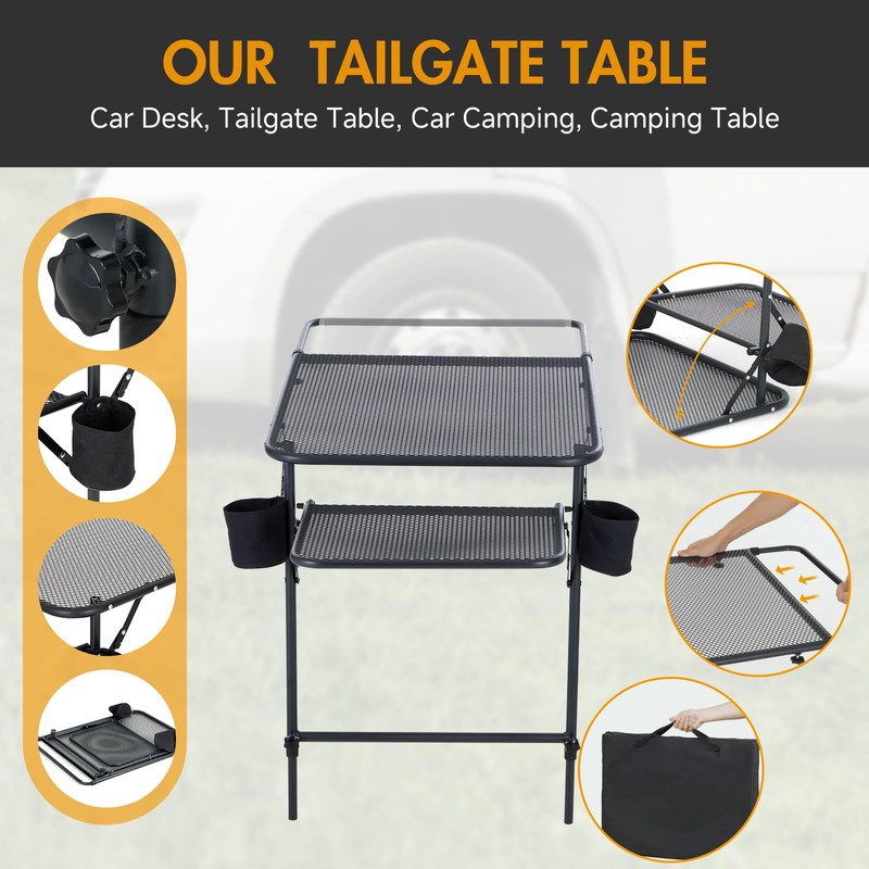 CDEN Tailgate Table, Car Desk, Tailgate Table, Car Camping, Camping Tables, Vehicle Tables, Adjustable Height, Lightweight