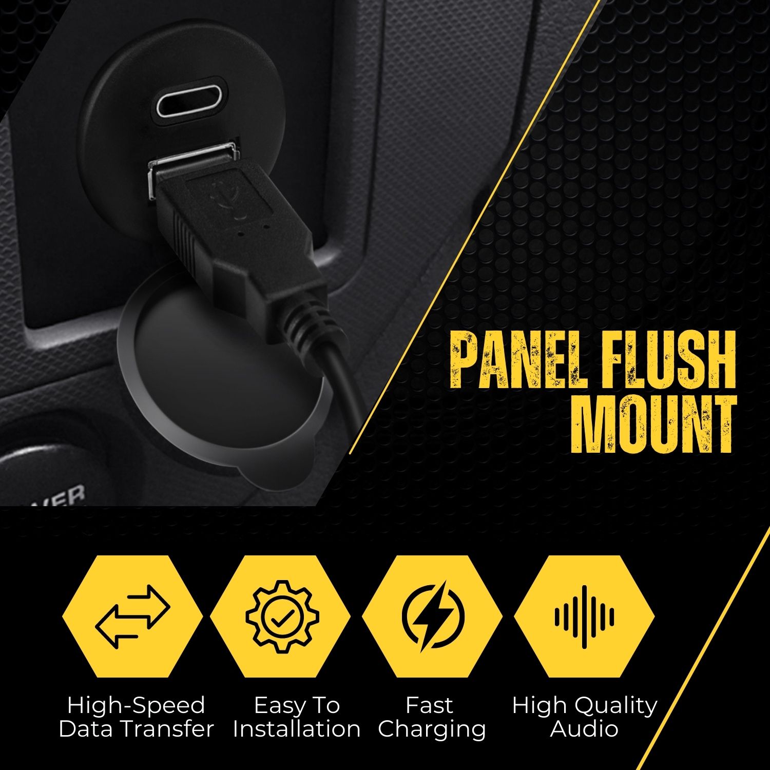 - USB-C + USB-A Flush Mount Cable - This USB extension cable allows you to extend the USB connection on the rear of most aftermarket radio & stereo, ideal for aftermarket head units that feature a rear AUX & USB 3.0 input