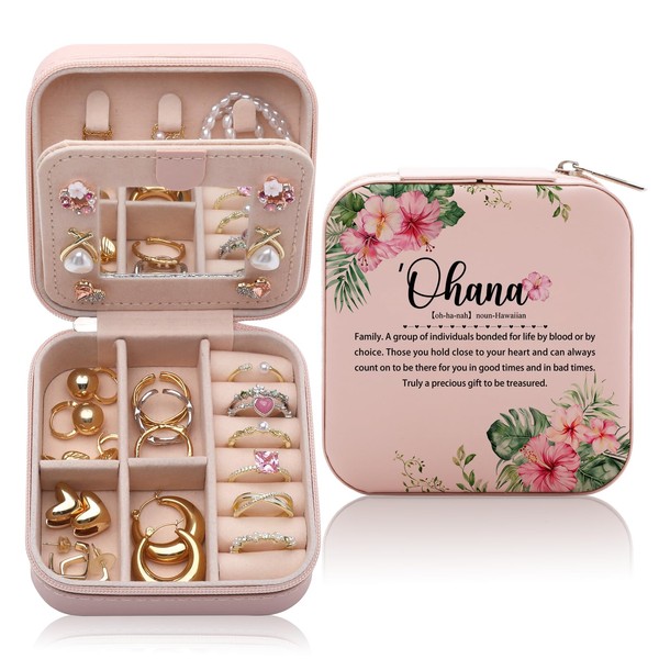 CEASQVAA Hawaii Gifts Hawaiian Travel Souvenirs Gifts for Women, Hawaiian Tropic Ohana Jewelry Box Gifts for Hawaii Trip, Hawaii City Themed Gifts Travel Essentials Jewelry Case Organizer
